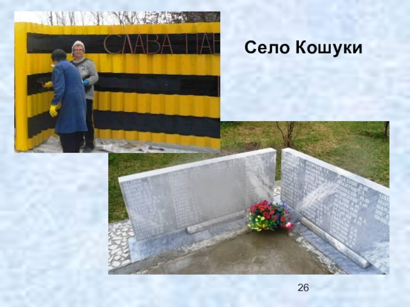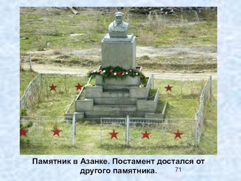 Слайд 71Памятник в Азанке. Постамент достался от другого памятника.