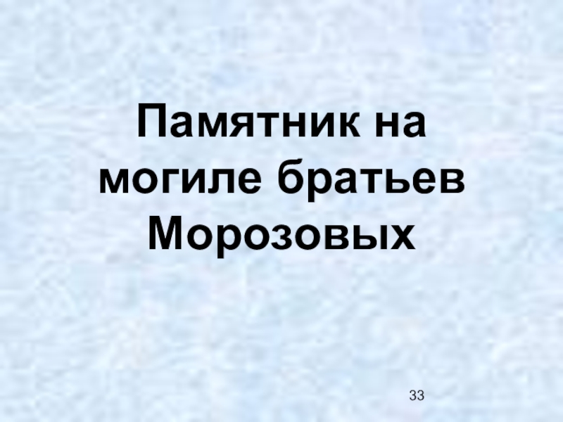 Слайд 33Памятник на могиле братьев Морозовых