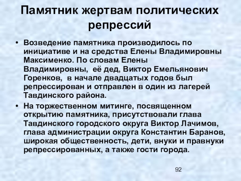 Слайд 92Памятник жертвам политических репрессий