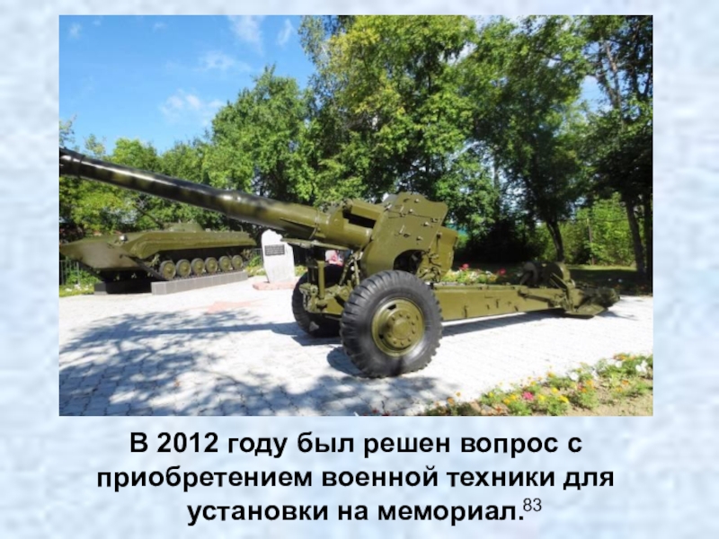 Слайд 83В 2012 году был решен вопрос с приобретением военной техники для