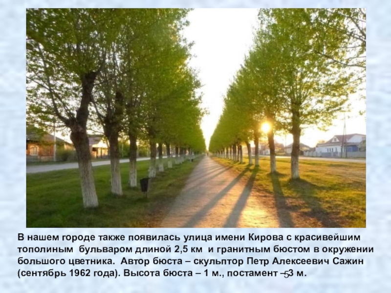 Слайд 5В нашем городе также появилась улица имени Кирова с красивейшим тополиным