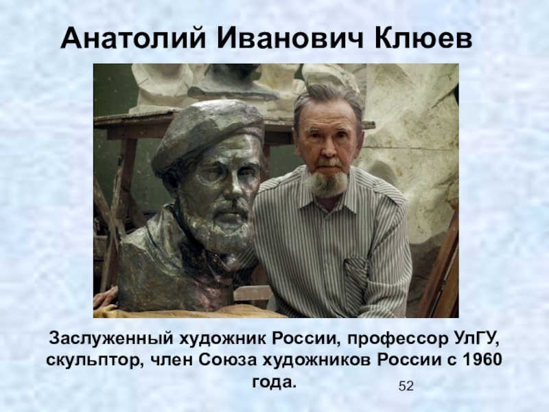 Заслуженный художник России, профессор УлГУ, скульптор, член Союза