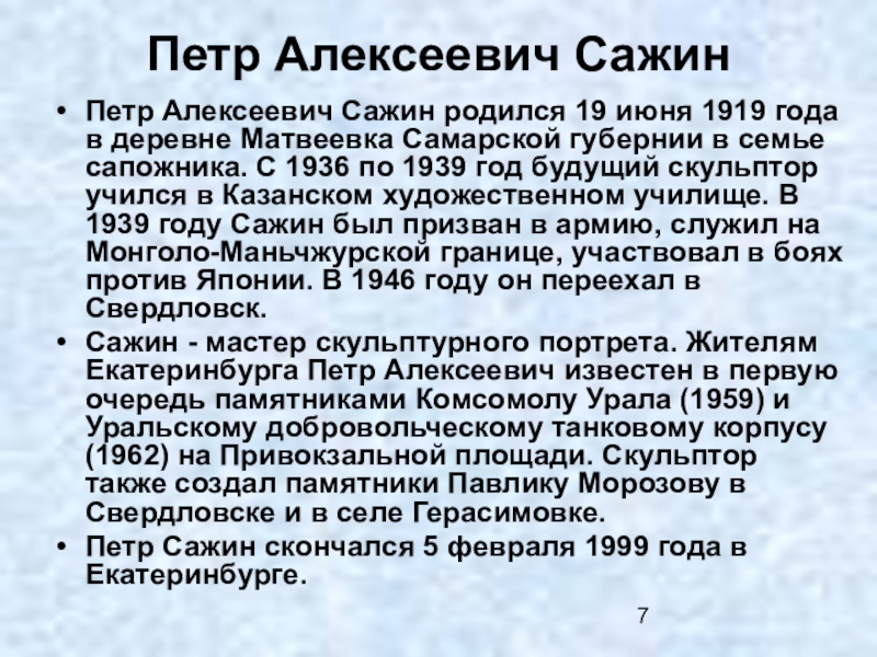 Слайд 7Петр Алексеевич Сажин