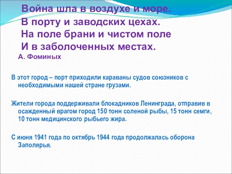 В этот город – порт приходили караваны судов союзников с необходимыми нашей стране грузами.