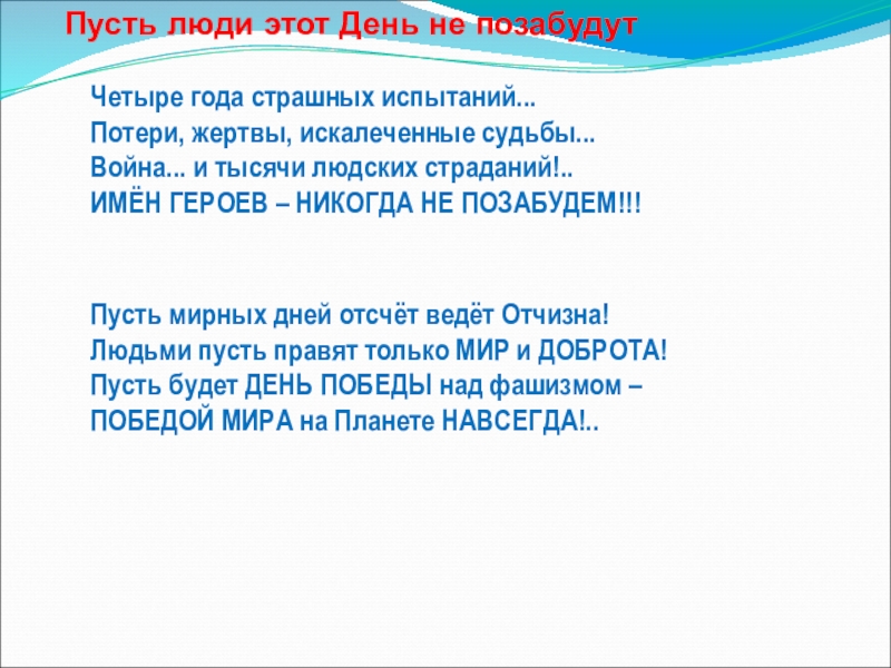 Пусть люди этот День не позабудут!