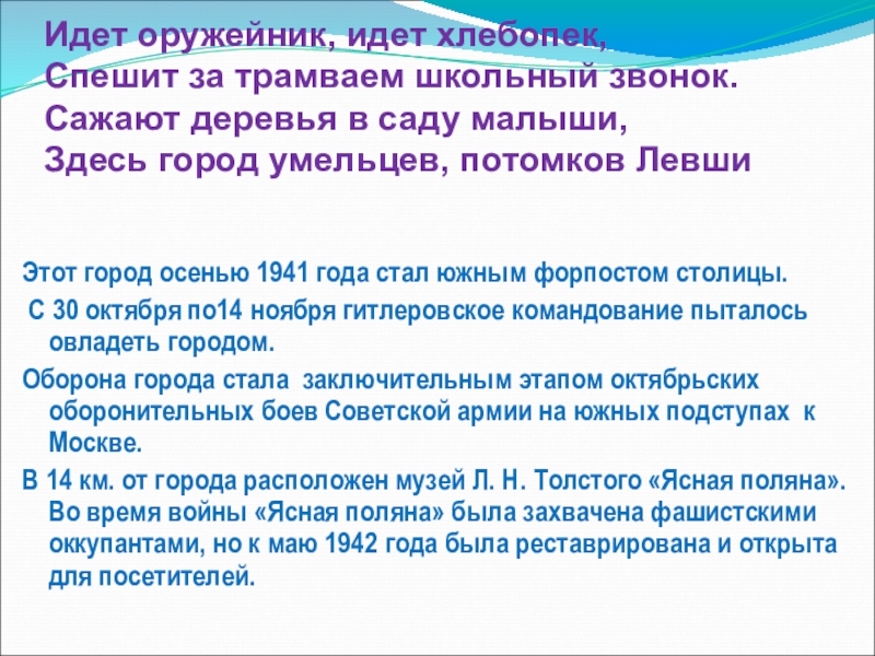 Этот город осенью 1941 года стал южным форпостом столицы.