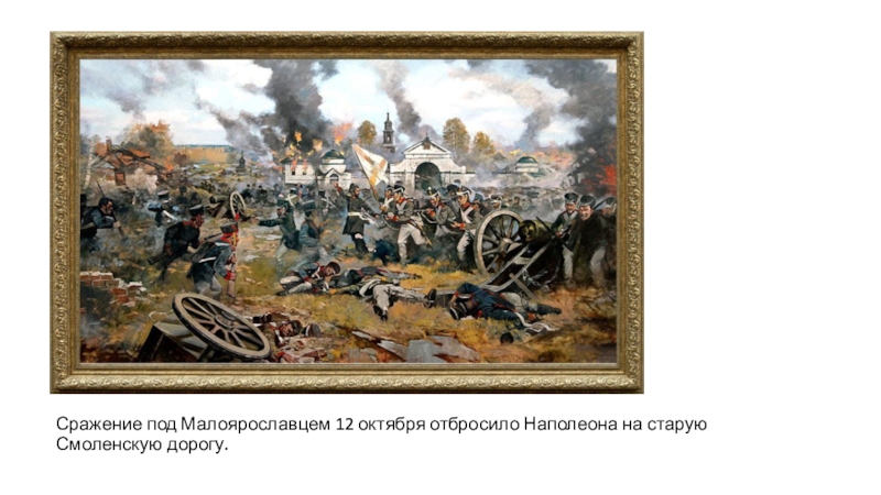 Слайд 12Сражение под Малоярославцем 12 октября отбросило Наполеона на старую Смоленскую дорогу.