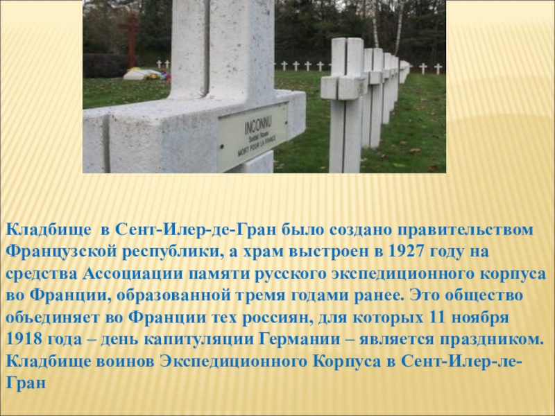 Слайд 9Кладбище в Сент-Илер-де-Гран было создано правительством Французской республики, а храм выстроен