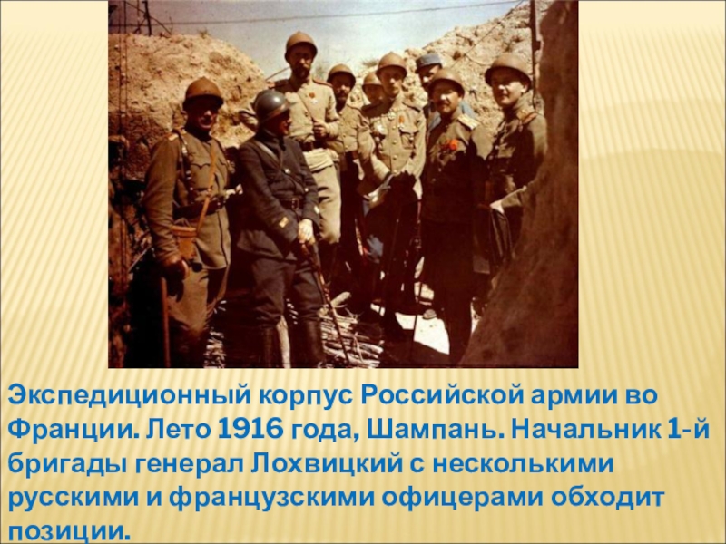 Слайд 7Экспедиционный корпус Российской армии во Франции. Лето 1916 года, Шампань. Начальник