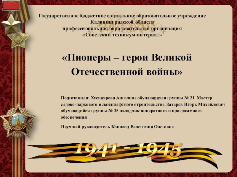 Подготовили: Хуснаярова Ангелина обучающаяся группы № 21 Мастер садово-паркового и ландшафтного строительства, Захаров Игорь Михайлович обучающийся группы № 35 наладчик аппаратного и программного обеспечения