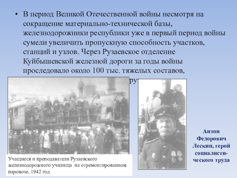 Учащиеся и преподаватели Рузаевского железнодорожного училища на отремонтированном паровозе. 1942 год