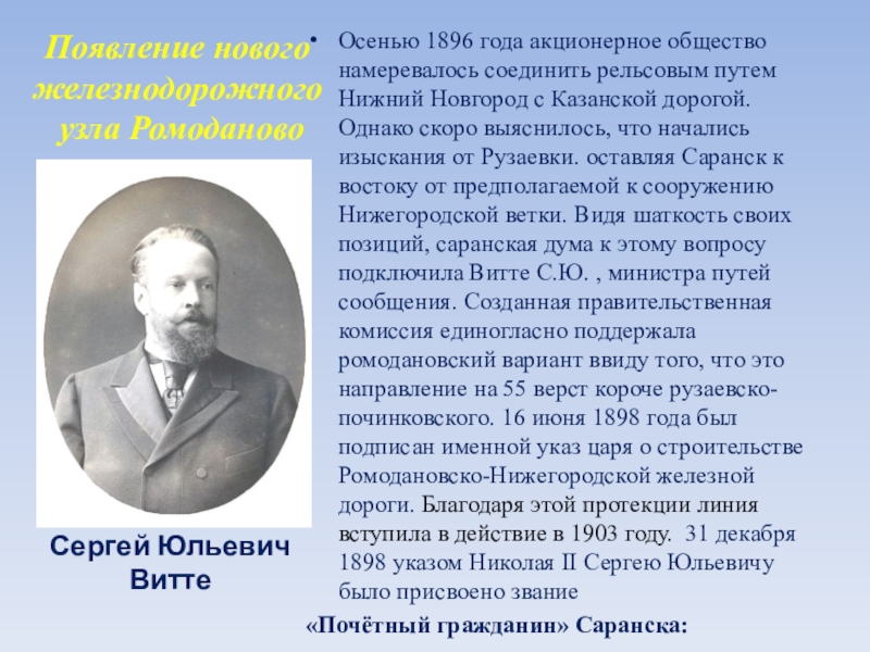 Сергей Юльевич Витте, министр путей сообщения