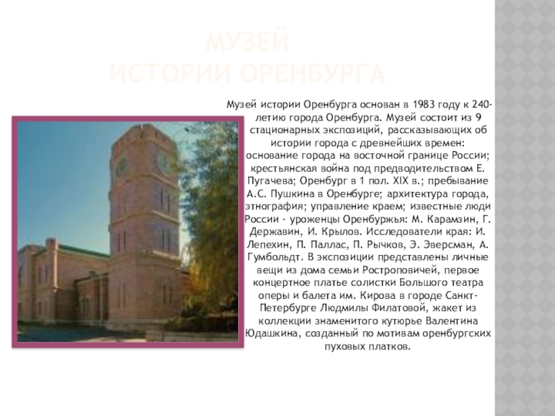 Музей истории Оренбурга основан в 1983 году к 240-летию