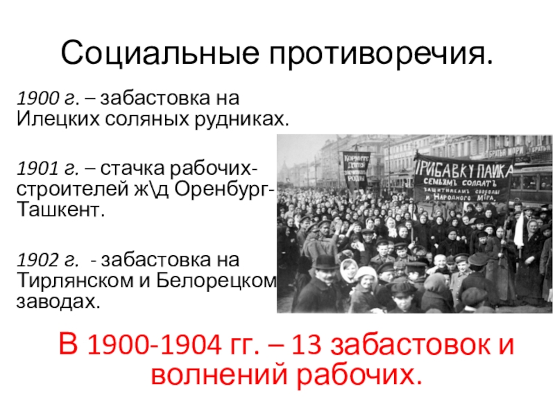 В 1900-1904 гг. – 13 забастовок и волнений рабочих.
