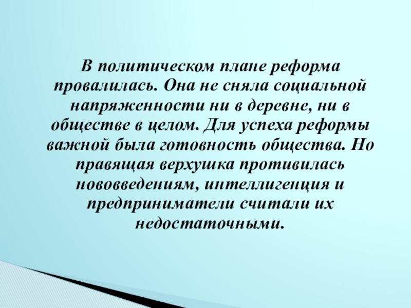 Слайд 11В политическом плане реформа провалилась. Она не сняла социальной напряженности ни