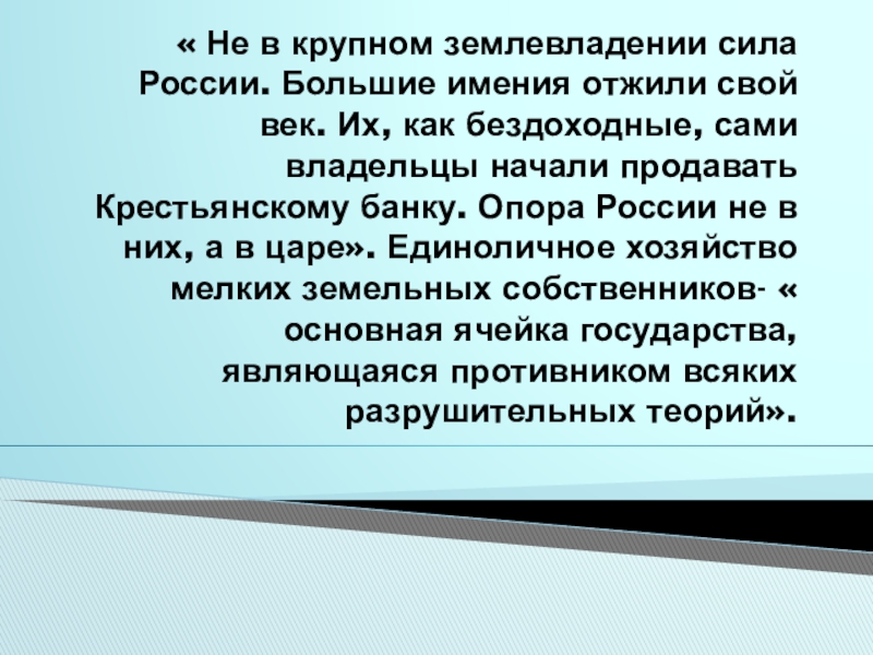 Слайд 6« Не в крупном землевладении сила России. Большие имения отжили свой