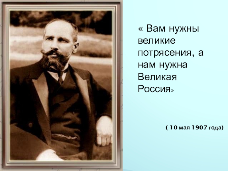 Слайд 3« Вам нужны великие потрясения, а нам нужна Великая Россия»