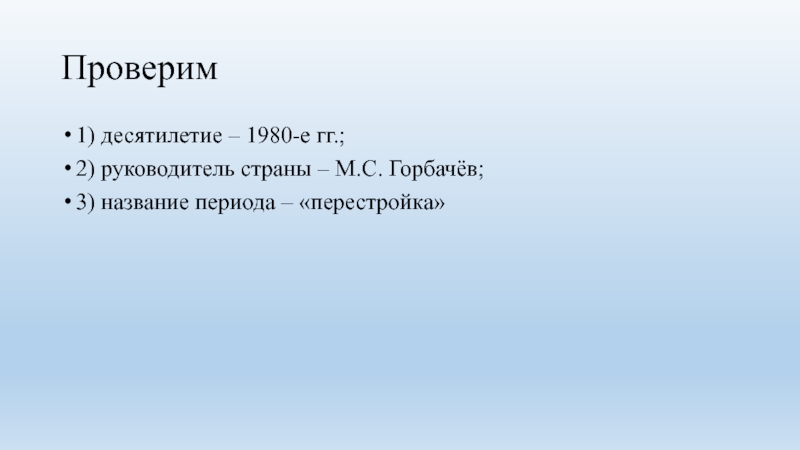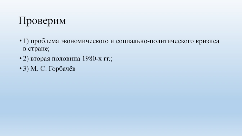 «XIX Всесоюзная партийная конференция... констатирует: выработанный партией на апрельском Пленуме ЦК и XXVII съезде партии стратегический курс на всестороннее и революционное обновление советского общества и ускорение его социально-экономического развития неуклонно претворяется в жизнь. Приостановлено сползание страны к экономическому и социально-политическому кризису...