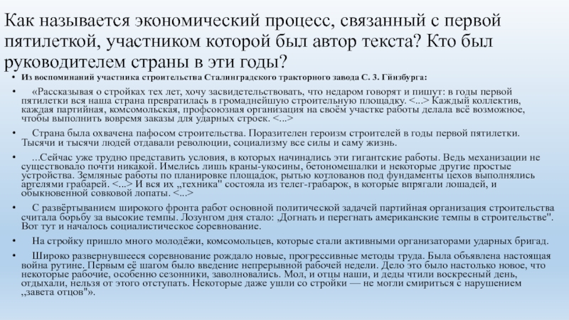 Из воспоминаний участника строительства Сталинградского тракторного завода С. 3. Гйнзбурга: