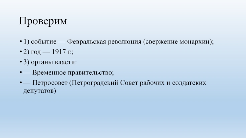 ...То был исторический момент, породивший [новую Россию], которая заняла место России, осквернённой и загаженной Распутиным и ненавистной всем монархией. Непопулярные чиновные лица были буквально сметены со своих постов, многие из них — убиты и ранены. Рабочие на заводах, прекратив работу, принялись устранять неугодных им управляющих и инженеров, вывозя их на тачках за пределы предприятий. В некоторых районах крестьяне... стали на свой лад решать аграрный вопрос, изгоняя помещиков и захватывая их земли... После трёх лет войны до предела уставшие на фронте солдаты отказывались подчиняться своим офицерам и продолжать войну с врагом». Из воспоминаний государственного деятеля.