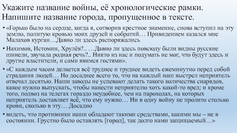 видеть, что противники наши обладают такими средствами, какими мы – не в состоянии. Грустно было оставлять [город], так долго нами защищаемый…»