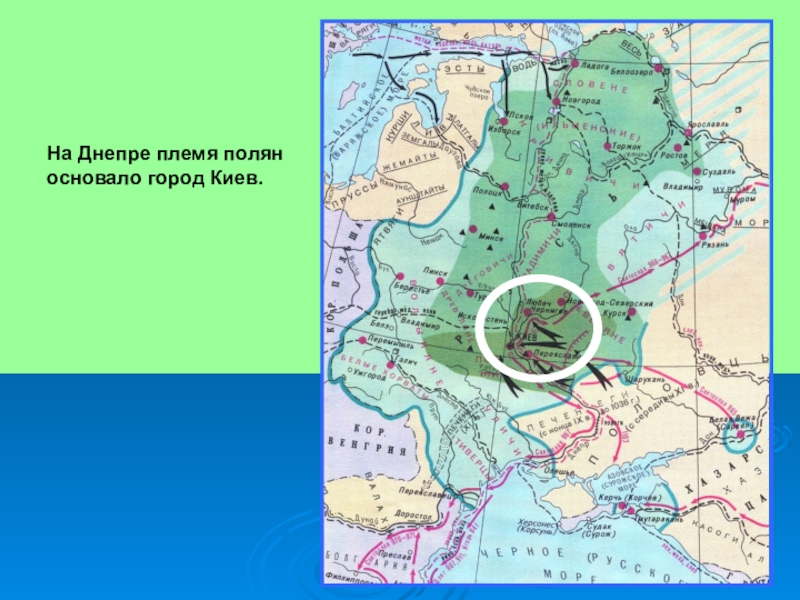На Днепре племя полян основало город Киев.