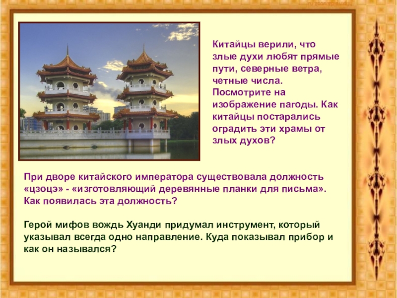 Герой мифов вождь Хуанди придумал инструмент, который указывал всегда одно направление. Куда показывал прибор и как он назывался?