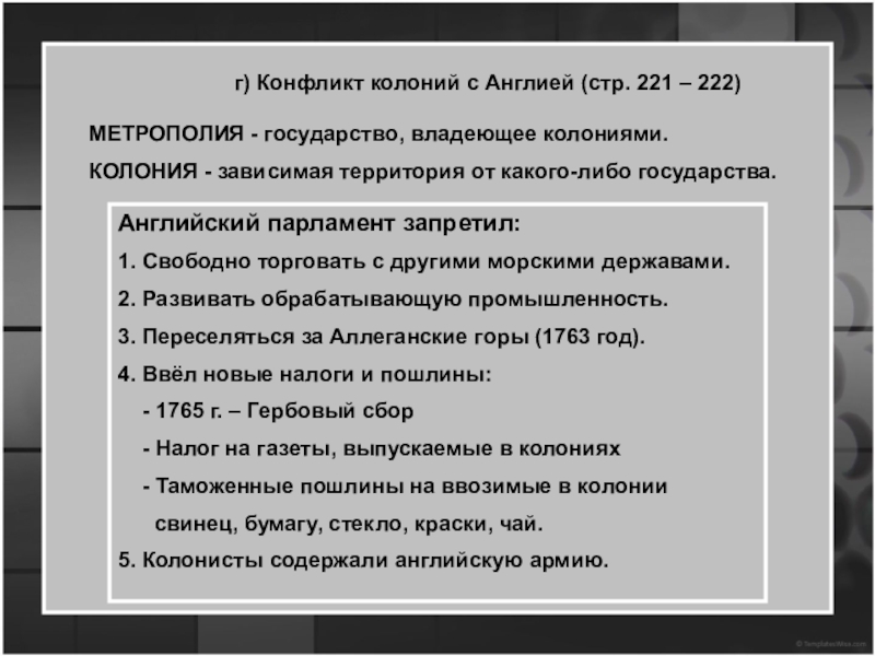 5. Колонисты содержали английскую армию.