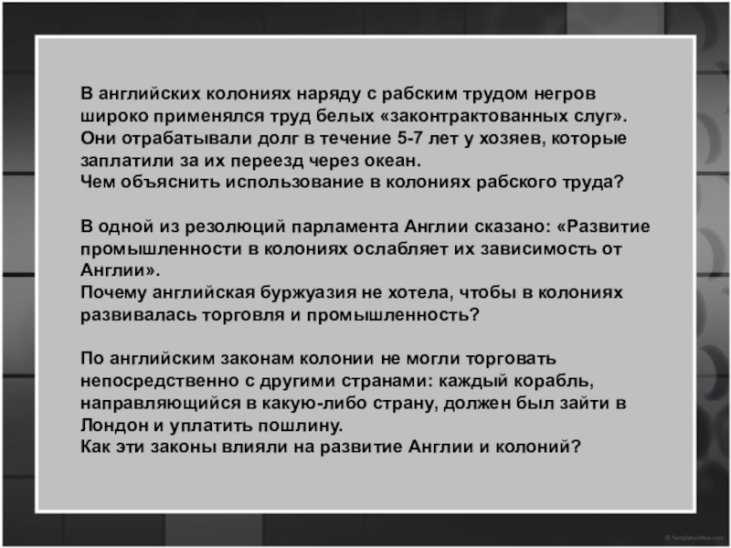 стр. 218 – 219 «Колониальное общество и хозяйство»