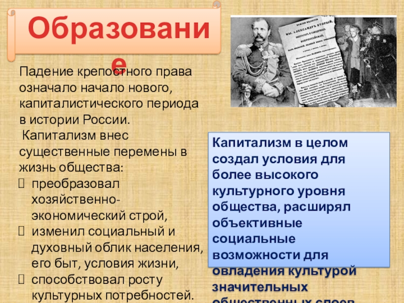 Падение крепостного права означало начало нового, капиталистического периода в истории