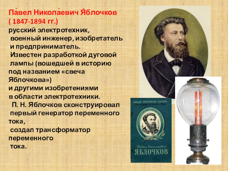 Слайд 18Па́вел Никола́евич Я́блочков