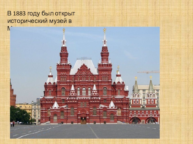 Слайд 36В 1883 году был открыт исторический музей в Москве.