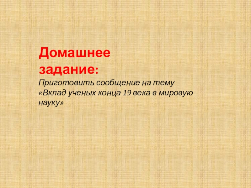 Приготовить сообщение на тему «Вклад ученых конца 19 века в