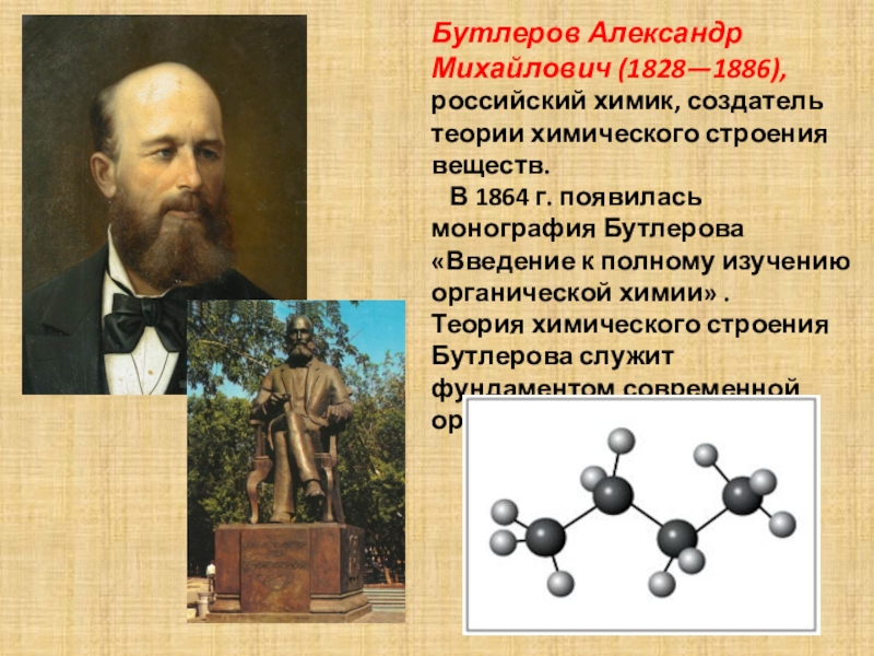 Слайд 24Бутлеров Александр Михайлович (1828—1886), российский химик, создатель теории химического строения веществ.
