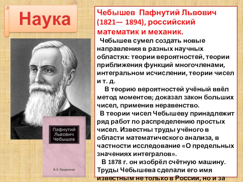 Чебышев Пафнутий Львович (1821— 1894), российский математик и механик.