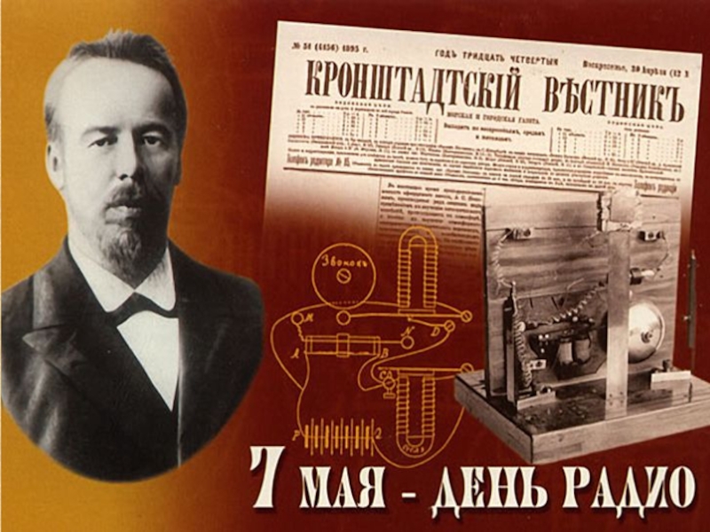 25 апреля 1895г. В Русском физическом обществе прочитал доклад о радиосвязи и продемонстрировал изготовленный им приемник-передатчик.