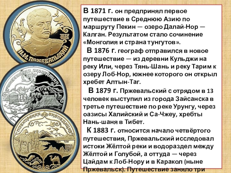 Слайд 29В 1871 г. он предпринял первое путешествие в Среднюю Азию по