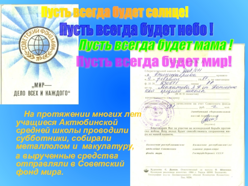 На протяжении многих лет учащиеся Актюбинской средней школы проводили субботники, собирали металлолом и макулатуру,