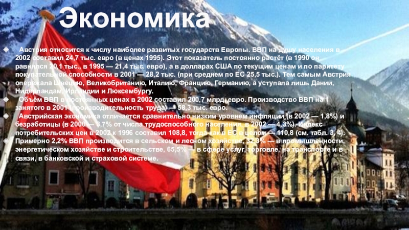 Австрия относится к числу наиболее развитых государств Европы. ВВП