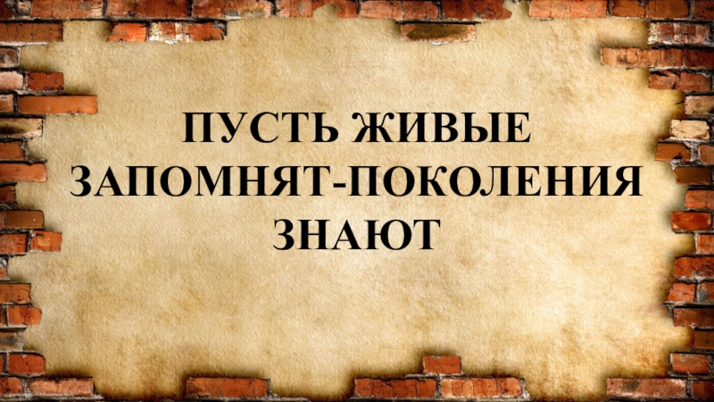 Слайд 1ПУСТЬ ЖИВЫЕ ЗАПОМНЯТ-ПОКОЛЕНИЯ ЗНАЮТ
