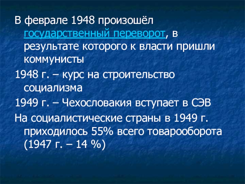 Слайд 2В феврале 1948 произошёл государственный переворот, в результате которого к власти