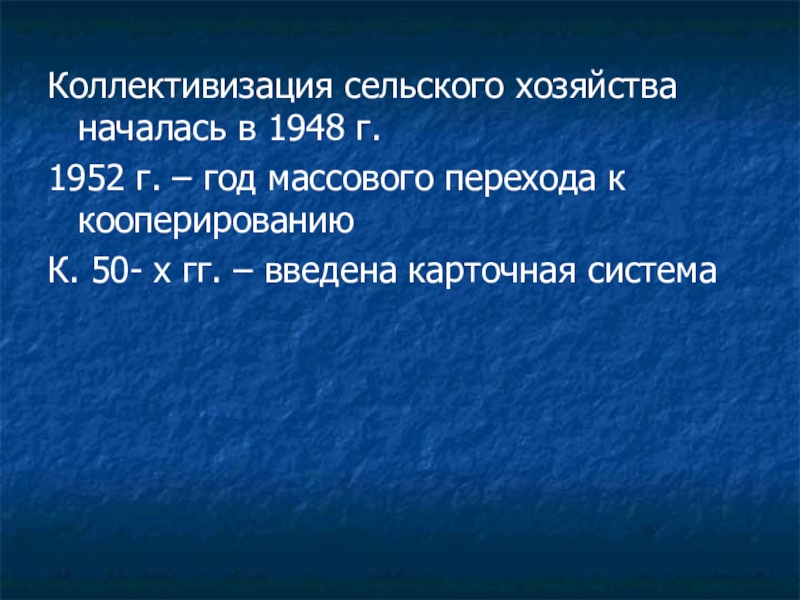 Слайд 7Коллективизация сельского хозяйства началась в 1948 г.