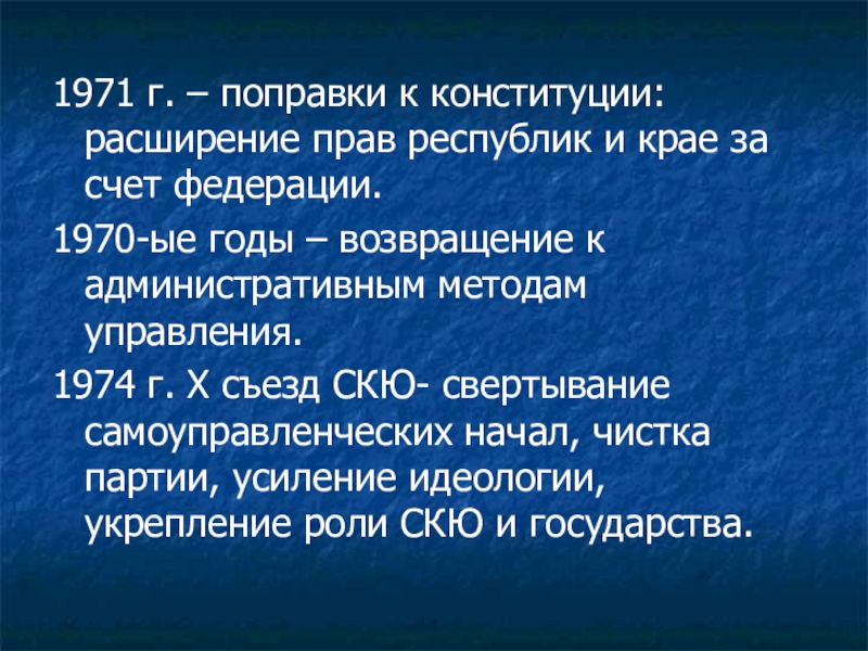 Слайд 351971 г. – поправки к конституции: расширение прав республик и крае