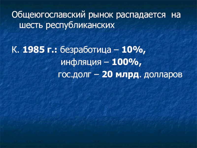 Слайд 38Общеюгославский рынок распадается на шесть республиканских