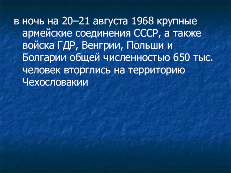 Слайд 20в ночь на 20–21 августа 1968 крупные армейские соединения СССР, а
