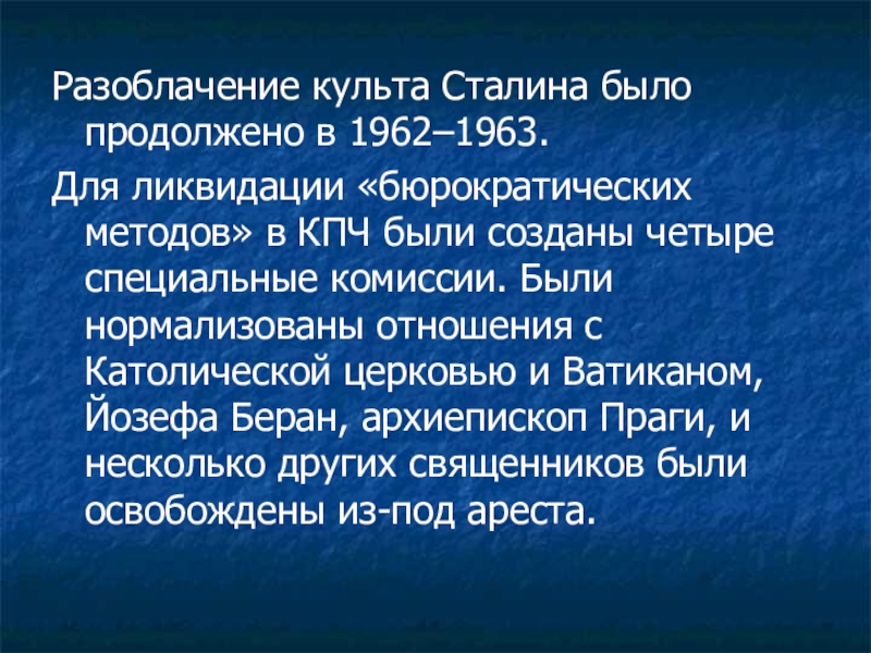Слайд 15Разоблачение культа Сталина было продолжено в 1962–1963.