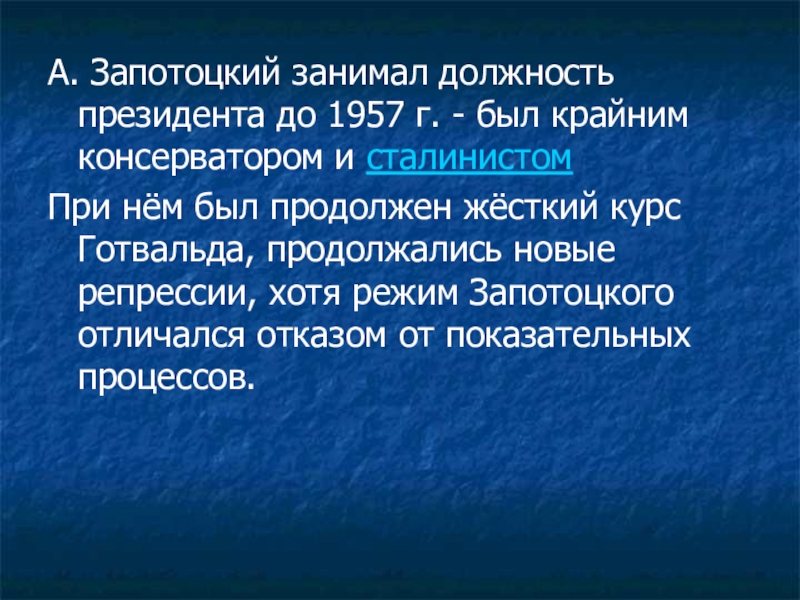 Слайд 11А. Запотоцкий занимал должность президента до 1957 г. - был крайним