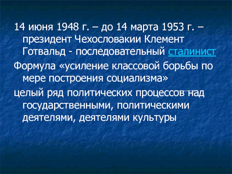 Слайд 814 июня 1948 г. – до 14 марта 1953 г. –