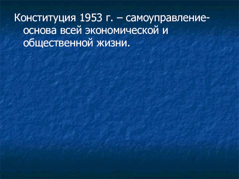 Слайд 29Конституция 1953 г. – самоуправление- основа всей экономической и общественной жизни.