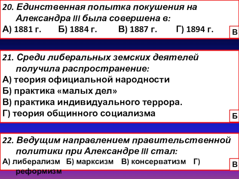 22. Ведущим направлением правительственной политики при Александре III стал: